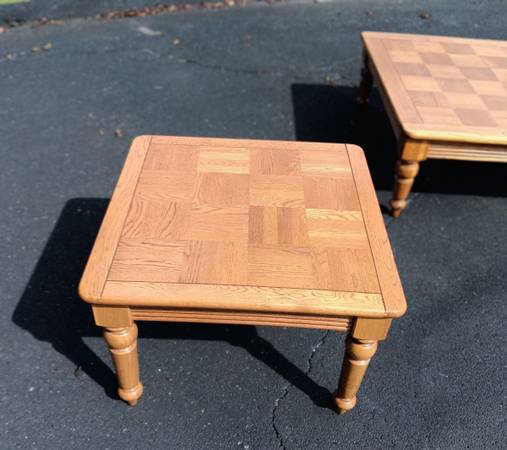Italian-Style Tuscan coffee table and two end tables. They are known for their classic, elegant designs and rich details. The parquet tops add a touch of sophistication and warmth.